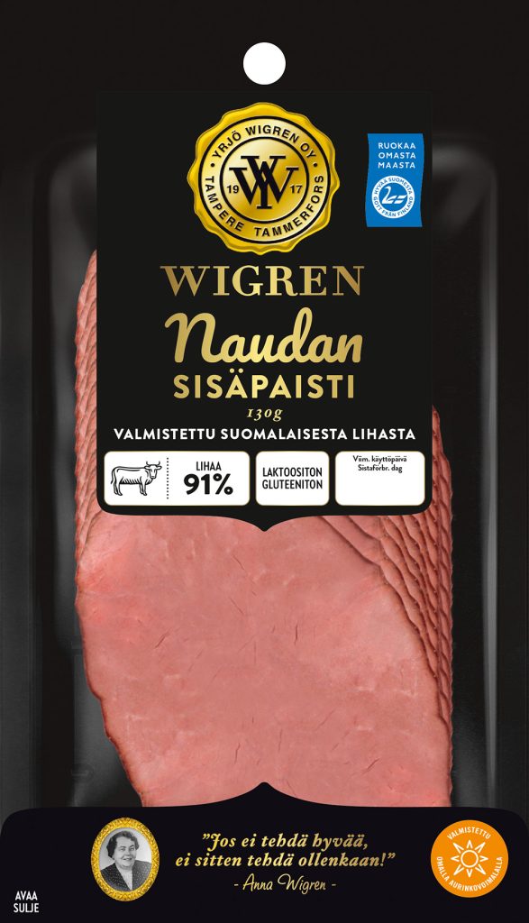 Ainekset: Naudan sisäpaisti (Suomi), vesi, jodioitu suola, dekstroosi, stabilointiaine (E451), hapettumisenestoaine (E316), säilöntäaine (E250)